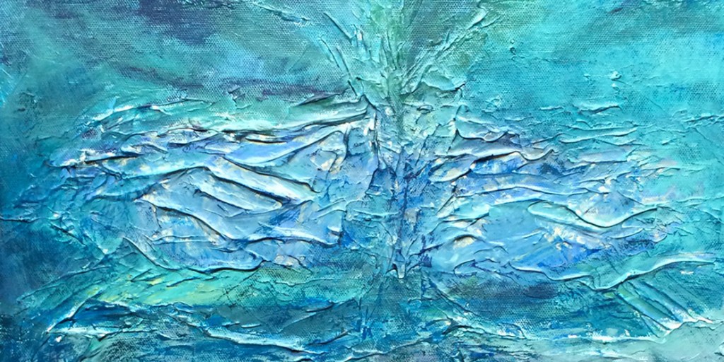 I created this “7 Days” collection in July and August of 2014. My process was to sit with the sacred text from the Book of Genesis for each day before approaching the canvas. I used gesso to create the high level energy for each day. Then I started to work with layers of acrylic color, allowing the image to materialize.