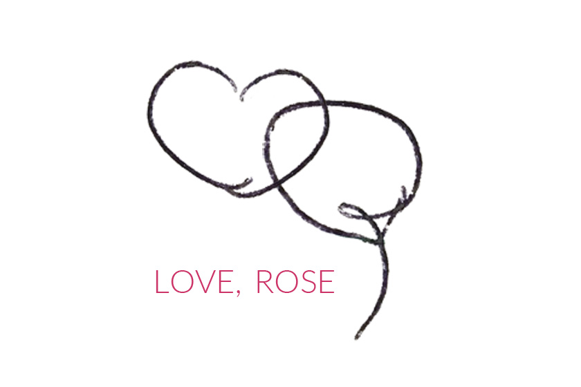 I created the “love, rose” greeting card line to honor my mom Rosemary’s devotion to lifting spirits by sending people special cards. The logo is actually made from her beautiful handwriting, which graced so many cards and envelopes during her lifetime.