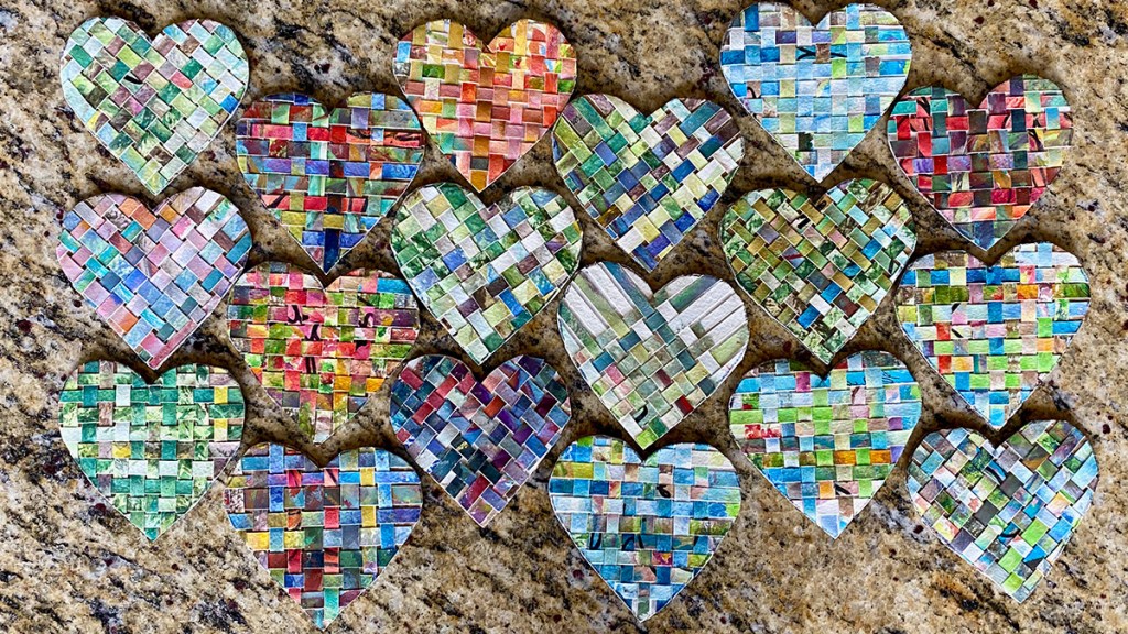 Here is a short slideshow “Lord, That I May See: Awakening Hearts Emerging in 2020” honoring the Christian Mystics who have been my guides through times of uncertainty. I created the heart icons that are the visual thread of this piece by weaving together strips from watercolor paintings I’ve done over the last 10 years.